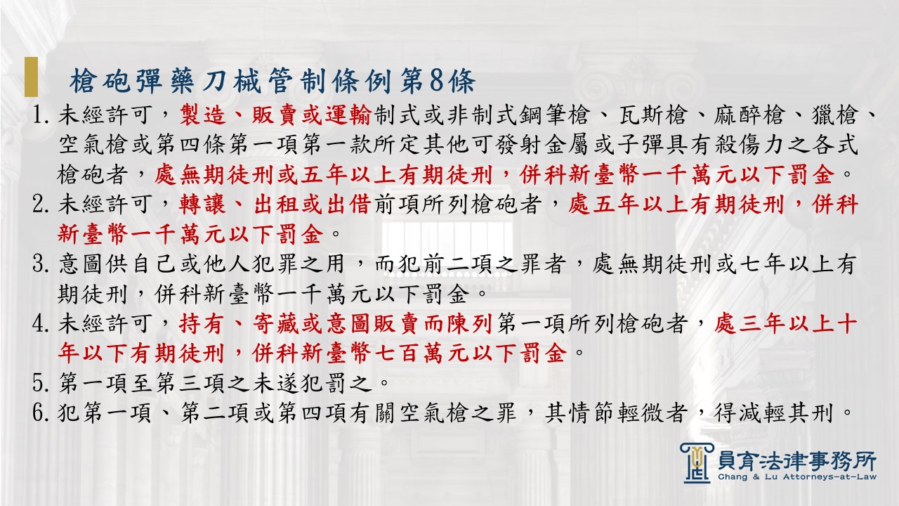 台中刑事律師,槍砲律師,刑案律師,槍砲彈藥刀械管制條例,台中槍枝犯罪,台中律師