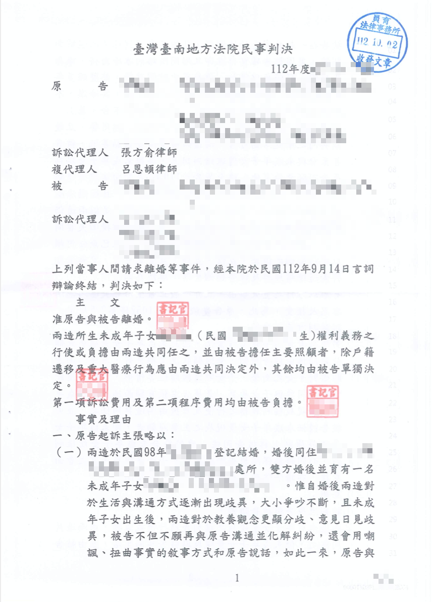 離婚案件-勝訴分享 | 台中律師事務所,台中離婚訴訟律師,南區離婚訴訟律師