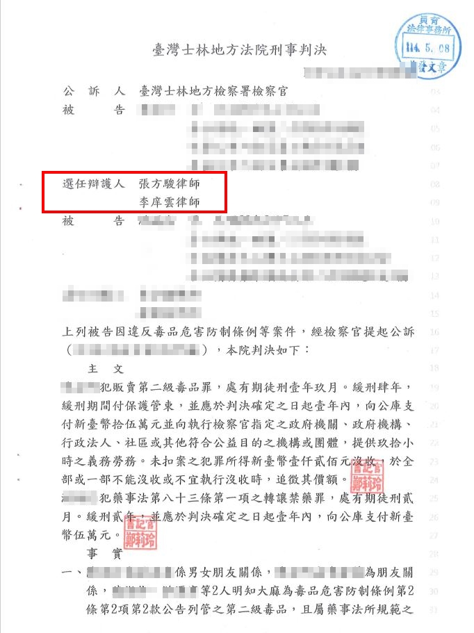 販賣二級毒品-緩刑案例分享 |台中律師事務所,台中刑事律師,台中毒品律師,台中刑案律師