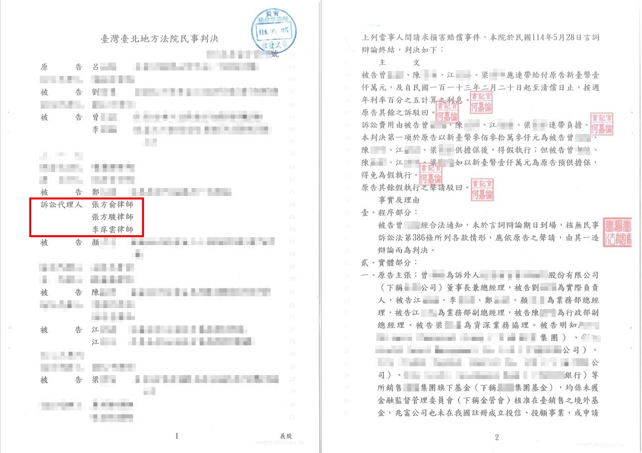 金融犯罪面臨巨額損害賠償免賠-民事勝訴案例分享|台中律師事務所,台中銀行法律師,台中非法吸金律師,損害賠償律師,民事案件律師