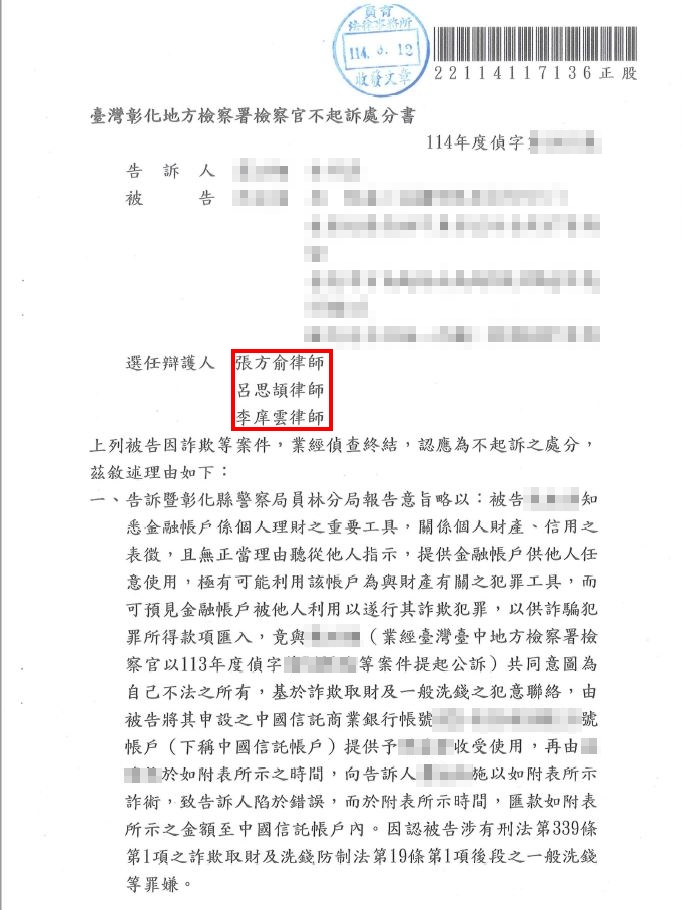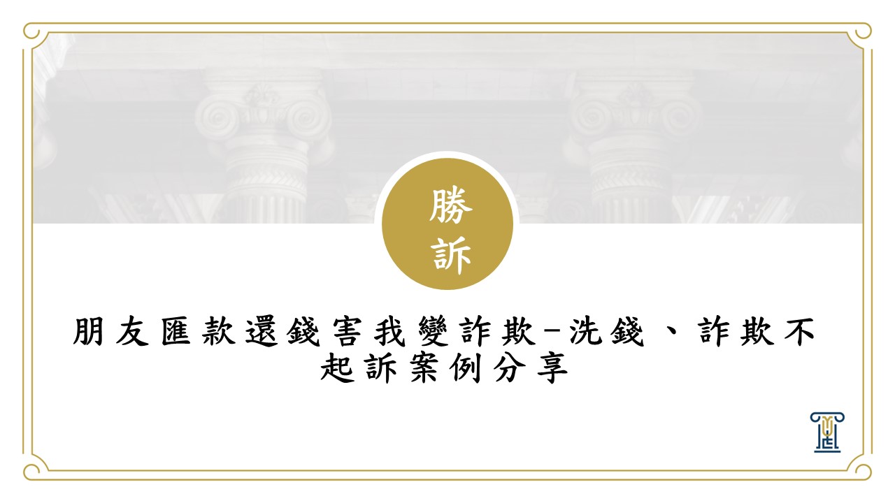 朋友匯錢還我害我變詐欺-洗錢詐欺不起訴案例分享| 台中律師事務所,台中刑事律師,台中詐欺律師,台中洗錢律師,人頭帳戶律師