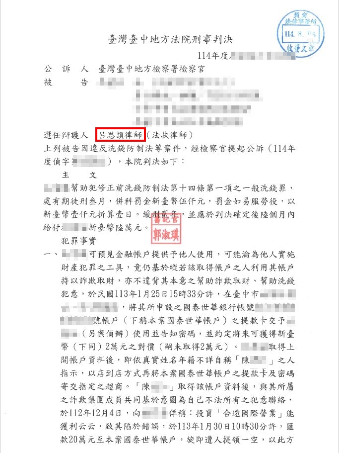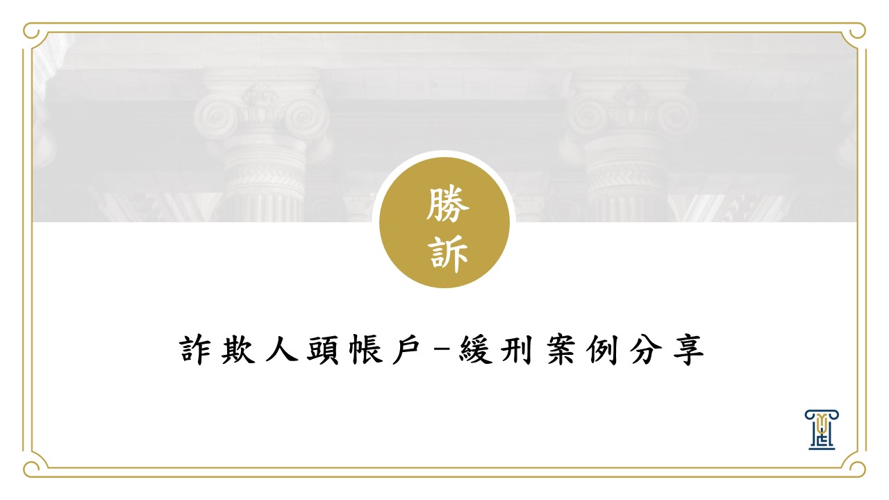 詐欺人頭帳戶-緩刑案例分享| 台中律師事務所,台中刑事律師,台中詐欺訴訟律師,洗錢防制法律師,人頭帳戶律師